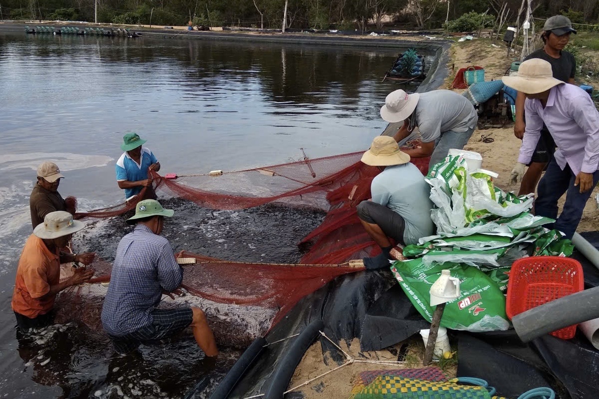 Tôm thẻ Hình 1. Thu hoạch chân trắng